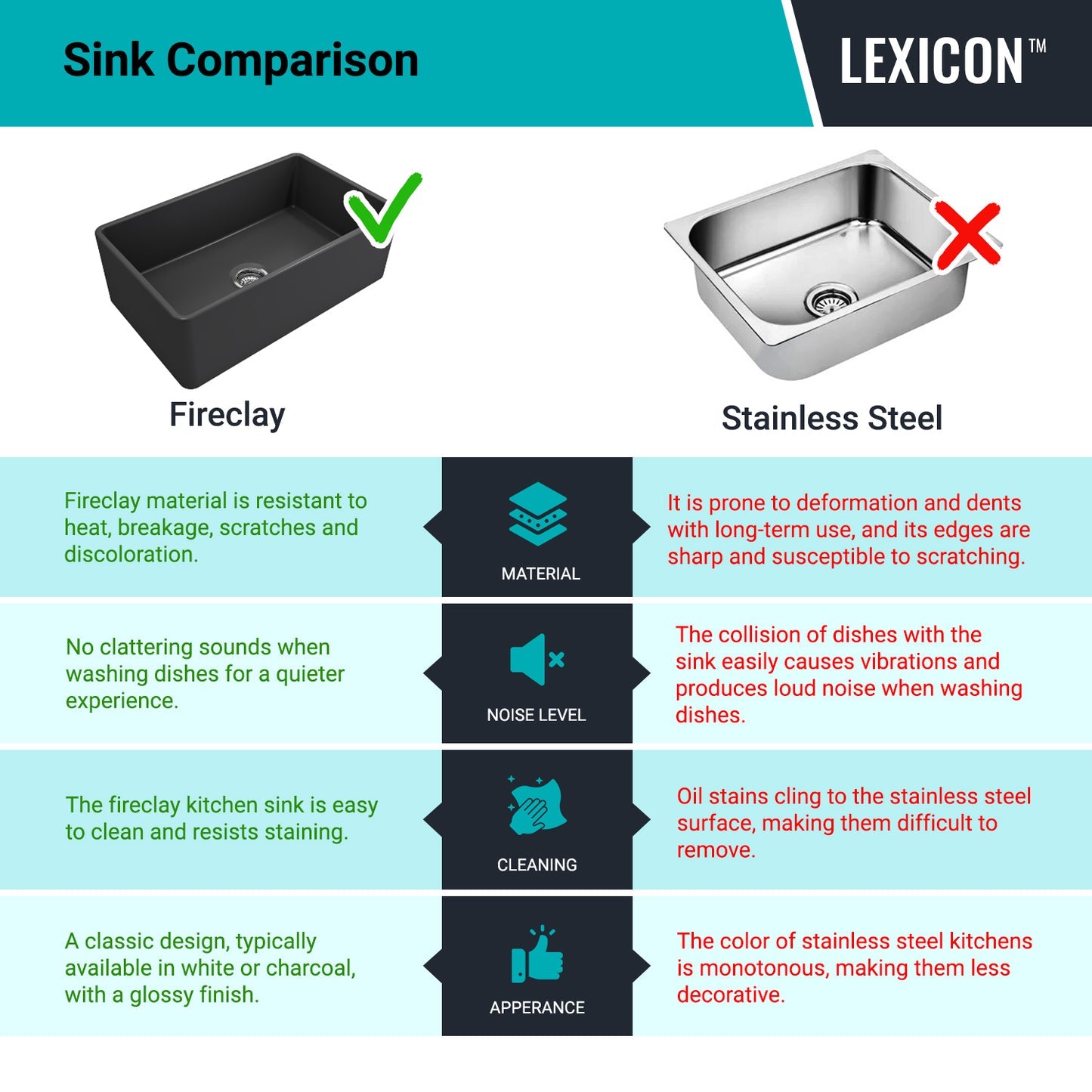 Features Include:- More durable than ceramic porcelain sinks