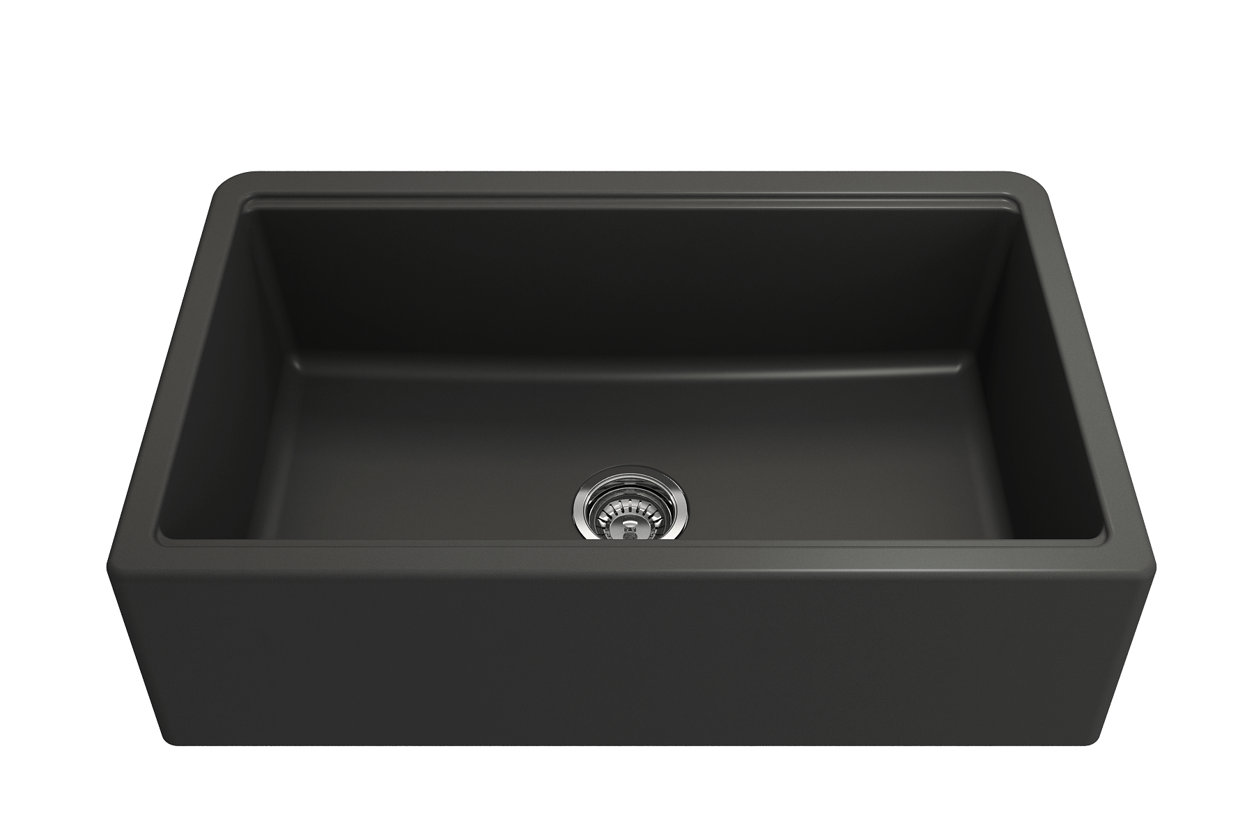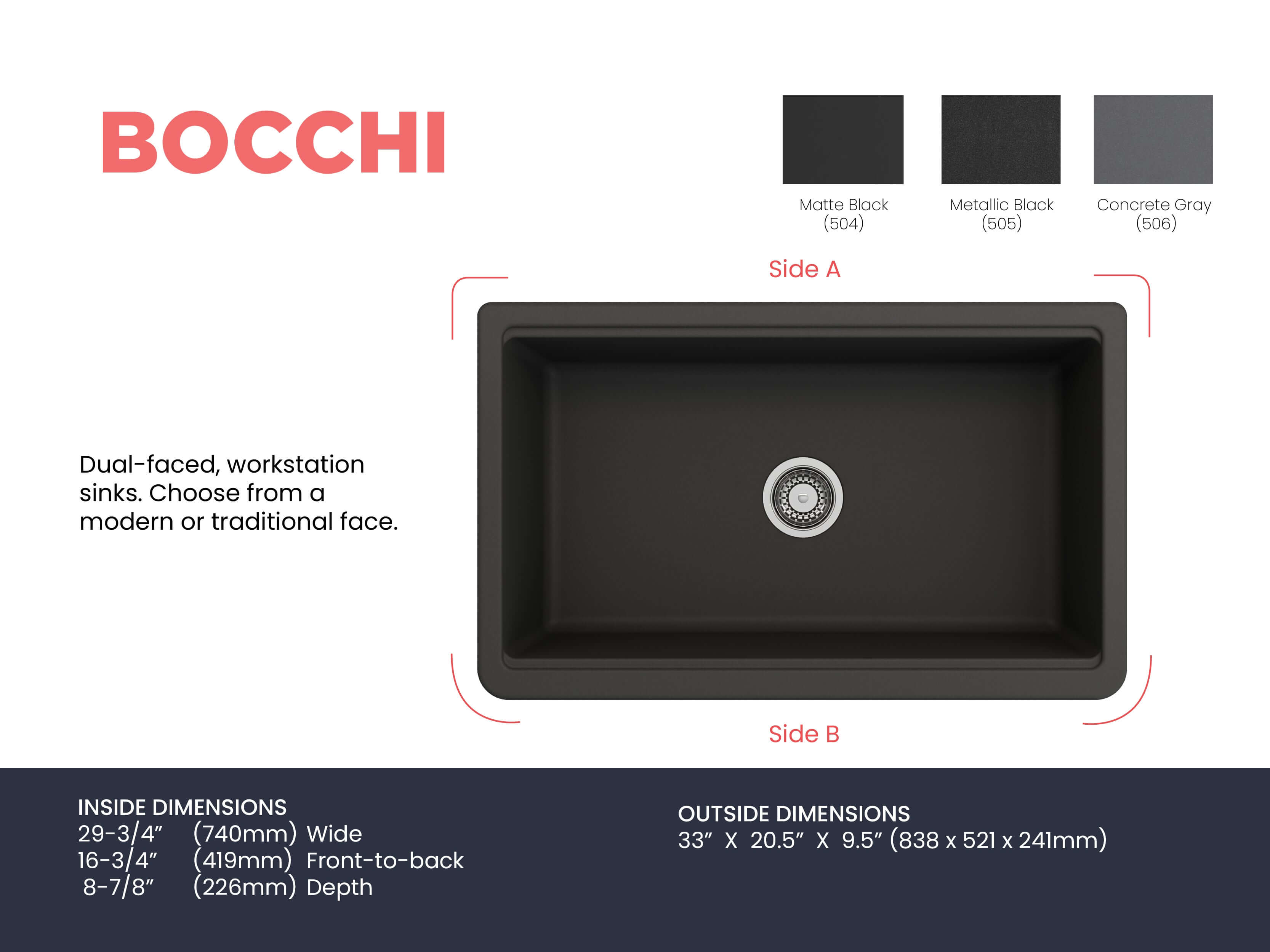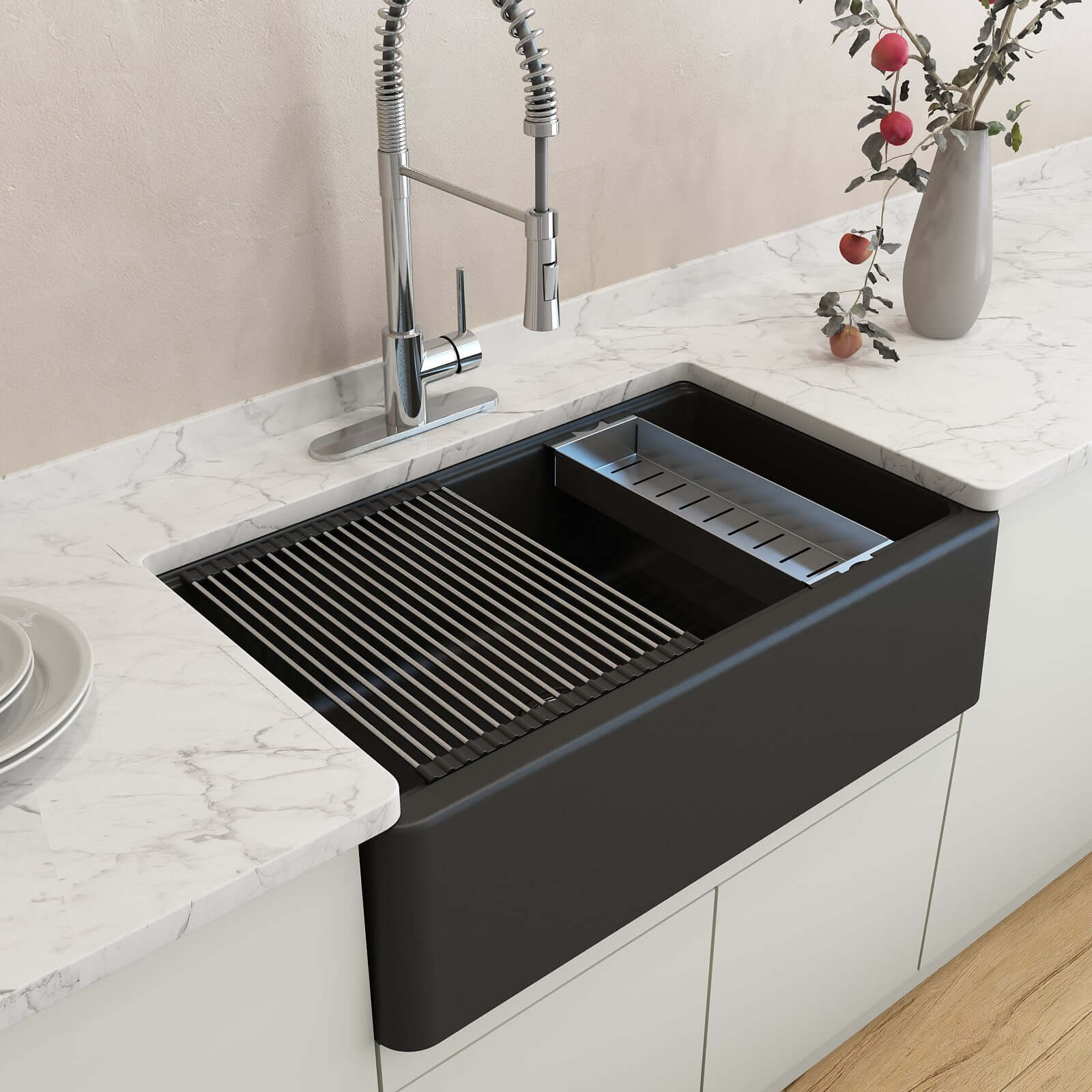 BOCCHI Arona 33" Granite Workstation Farmhouse Sink Kit with Faucet and Accessories, Matte Black (sink) / Chrome (faucet), 1600-504-2020CH