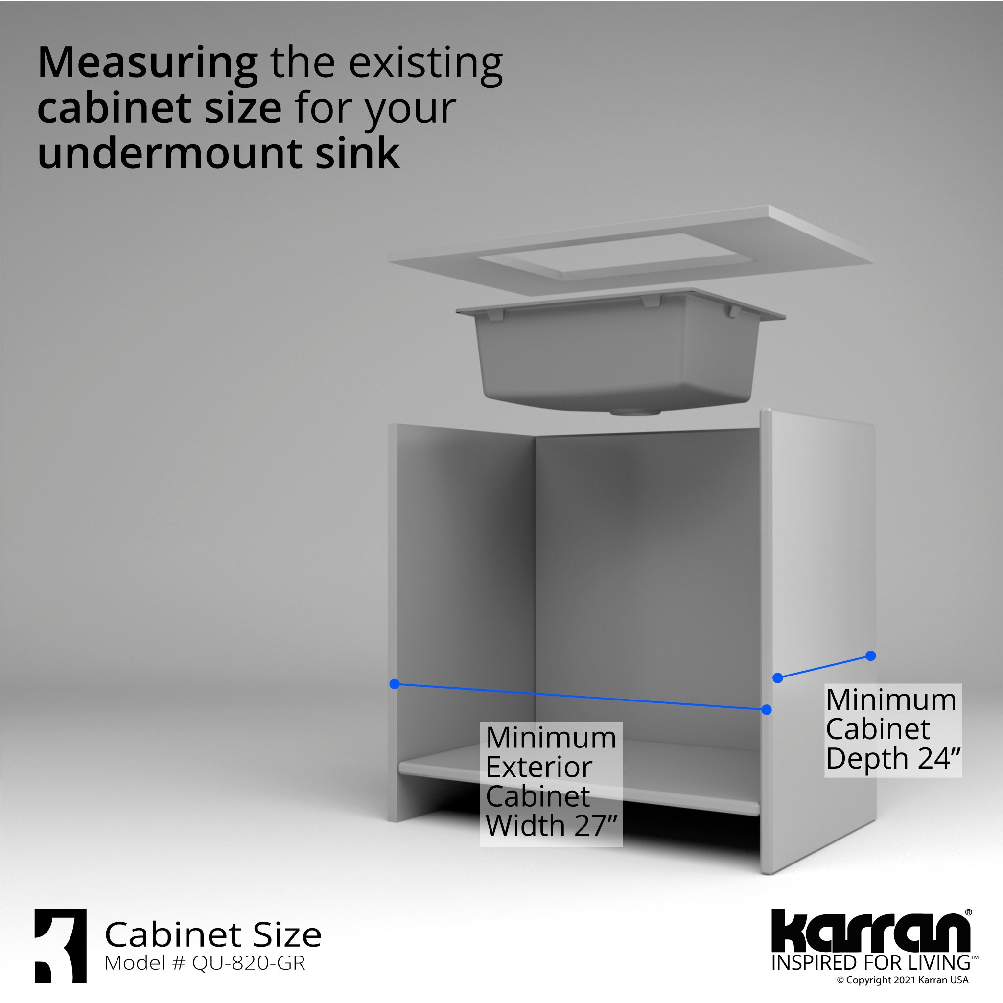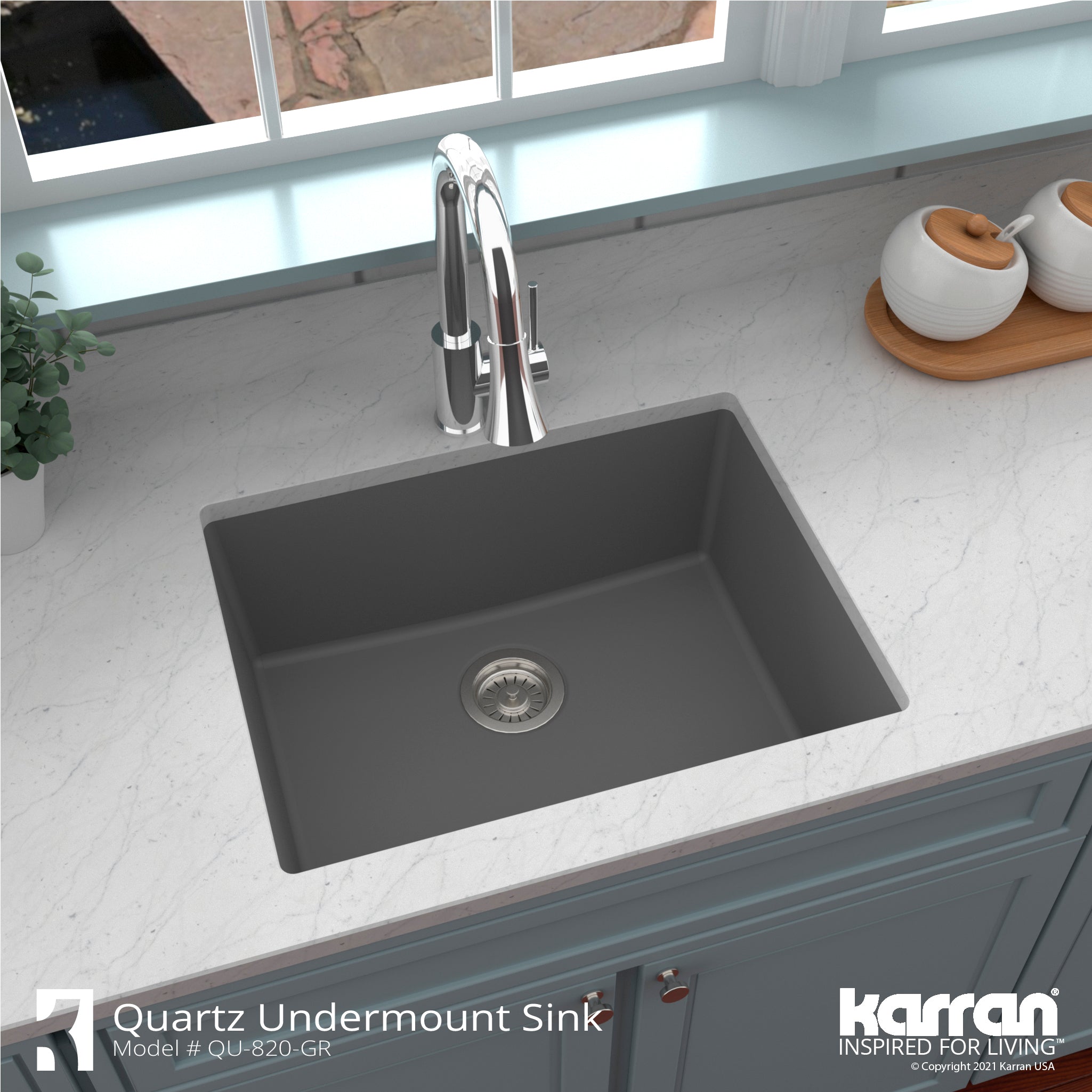Karran 24" Undermount Quartz Composite Kitchen Sink with Accessories, Grey, QU-820-GR-PK1