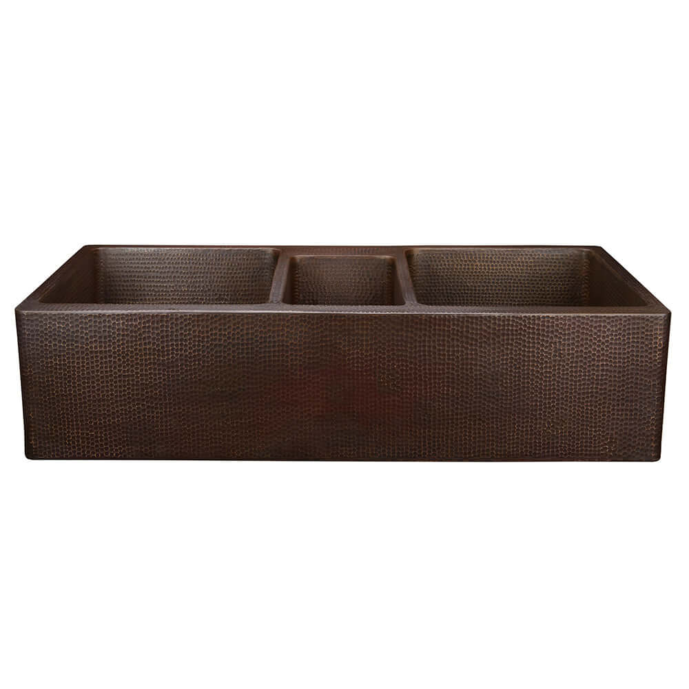 - Premier Copper Products 42" Copper Farmhouse Sink, 40/20/40 Triple Bowl, Oil Rubbed Bronze, KATDB422210