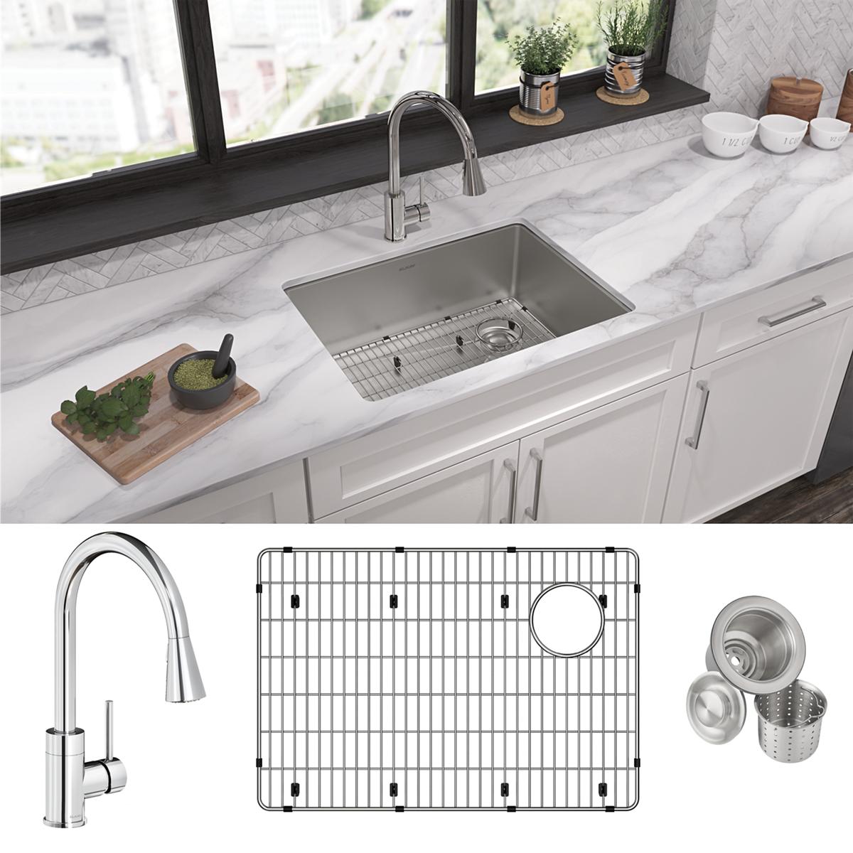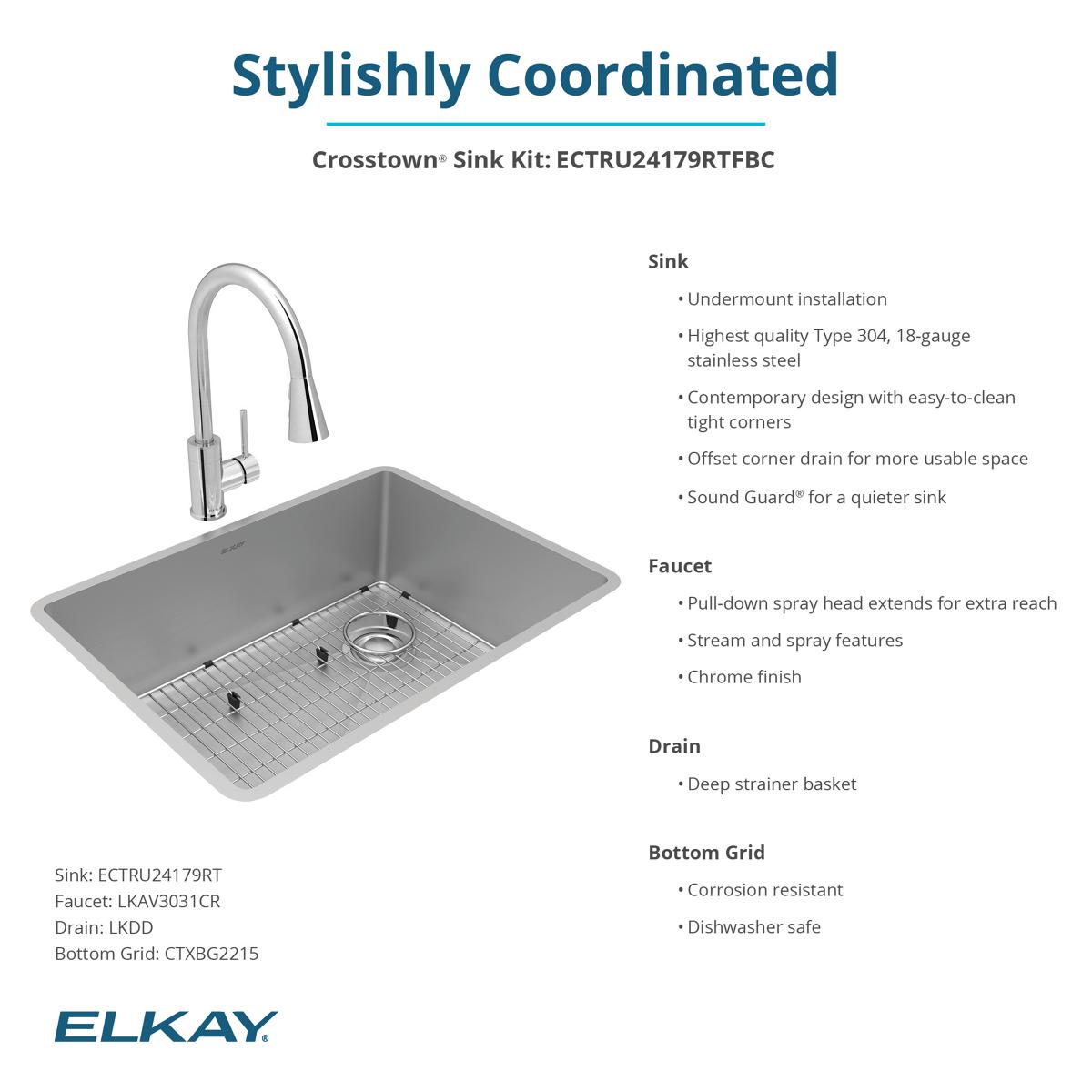 - KIT INCLUDES: ECTRU24179RT sink, LKAV3031CR faucet, CTXBG2215 bottom grid, LKDD deep strainer drain, cleaning kit; conveniently packaged together to save you time.