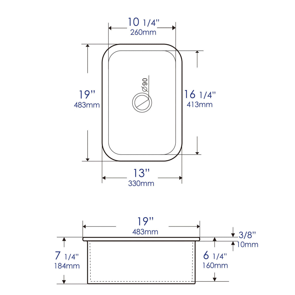 | Inside Bowl Dimensions: | 10.2" x 16.25" x 6.25" |