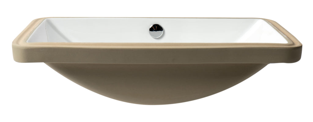 This sink gets the job done in the most classic way with the worlds most commonly used type of bathroom sink. A ceramic rectangular undermount sink that is timeless and will never go out of style. Also available in a round shape (ABC601) or an oval shape (ABC602). Undermount installation is the most convenient because it allows you to swish water from the counter directly into your sink with your hand and makes it so there is no exposed silicone or grout border between the sink and the countertop.