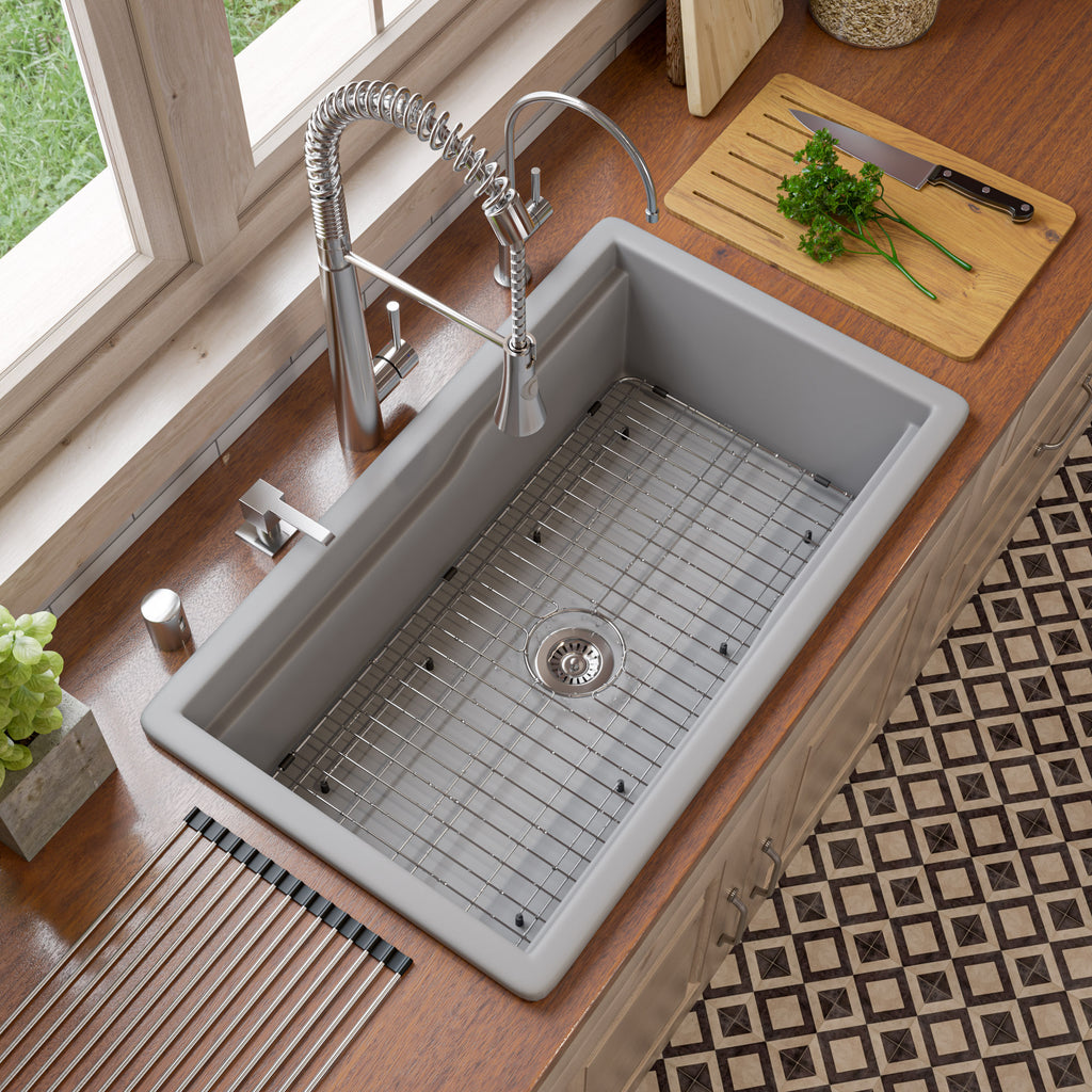 Traditional kitchen sinks are a thing of the pastworkstation sinks are the new must-have! Maximize your space with this innovative workstation sink, designed with three custom accessories that mount seamlessly. Crafted from high-grade fireclay, it offers versatile installation options, allowing for either undermount or drop-in placement.