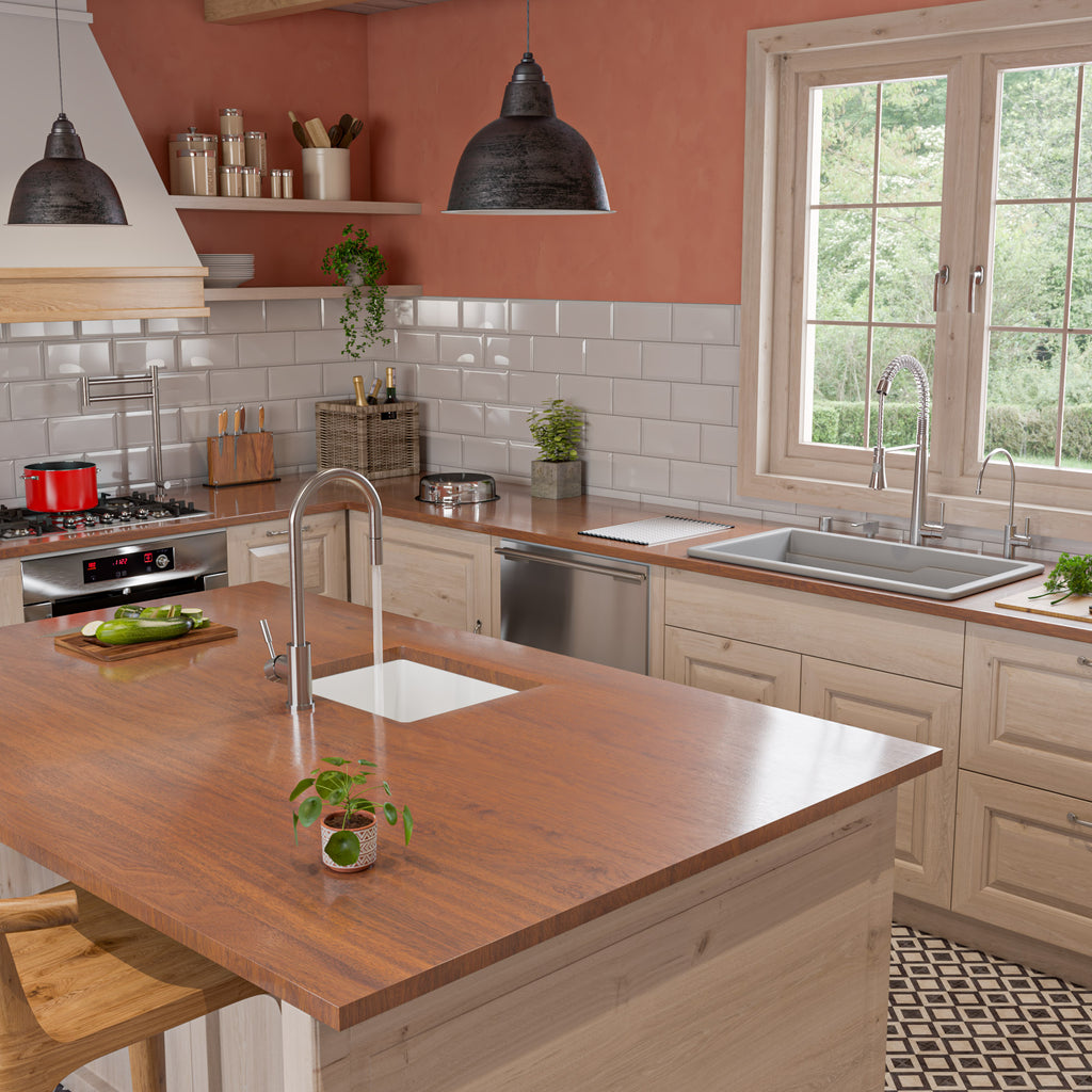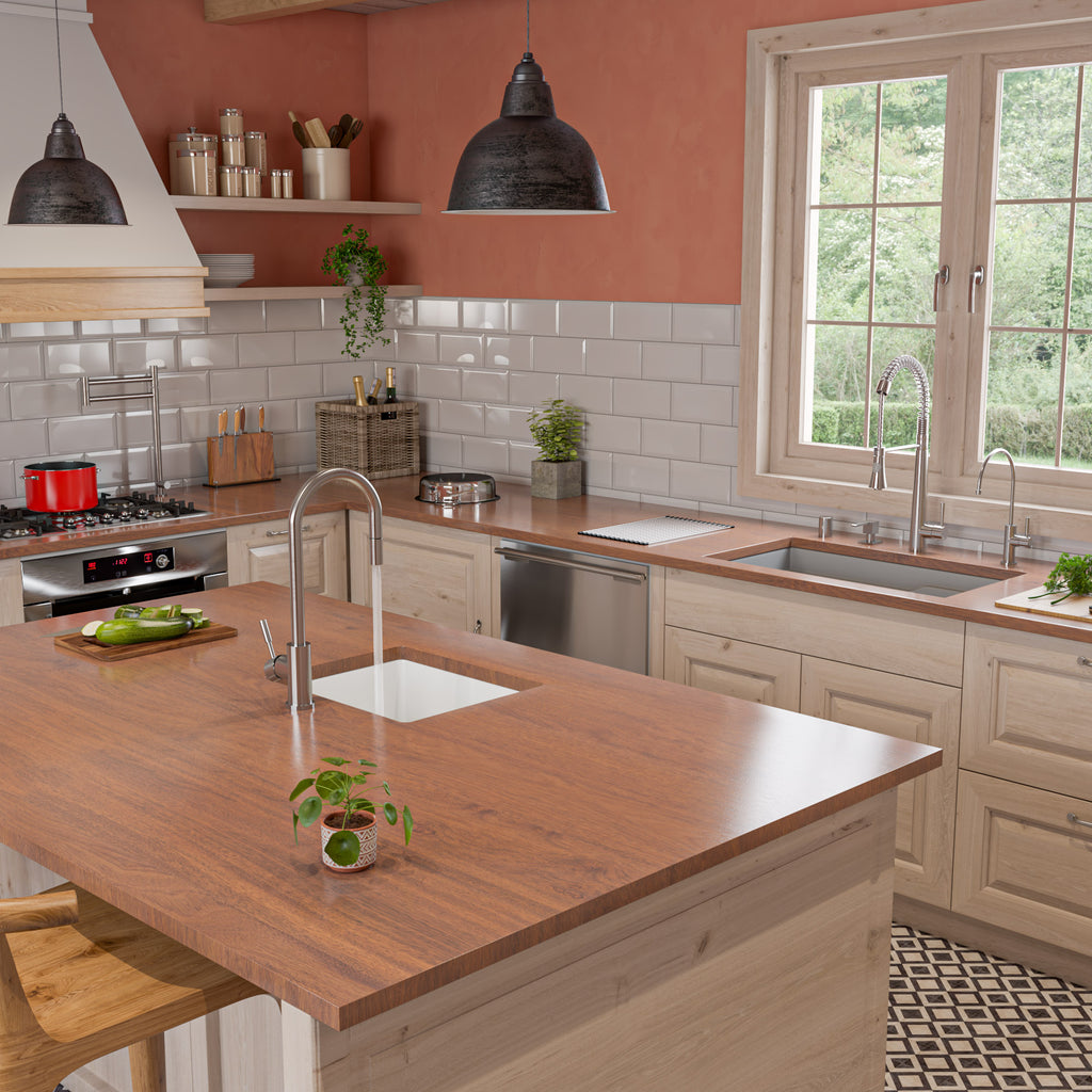 - Can be installed as an under-mount (countertop over the edge of the sink) or top-mount (countertop below the top edge of the sink).