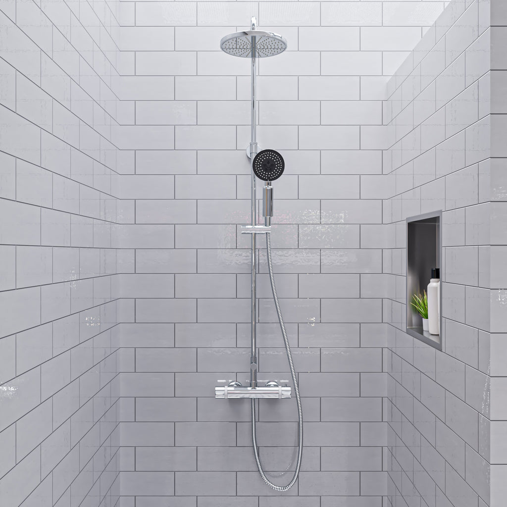 Everything you need for the best shower experience. This contemporary shower set by ALFI brand comes with a water diverter, temperature control, rain showerhead and handheld showerhead. All parts match and have modern rounded edges. Available in two finishes to accommodate your bathroom style, polished chrome and brushed nickel. Go ahead, indulge a little.