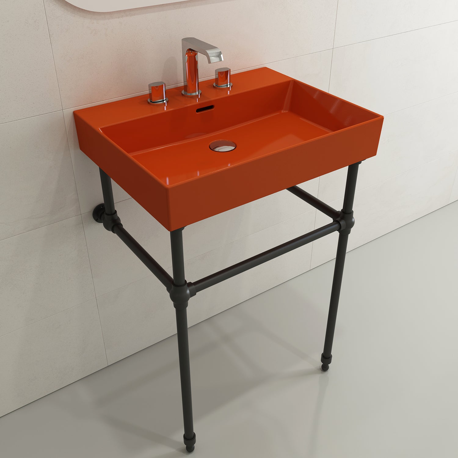 BOCCHI Milano 24" Rectangle Wallmount Fireclay Bathroom Sink, Orange, 3 Faucet Hole, 1376-012-0127