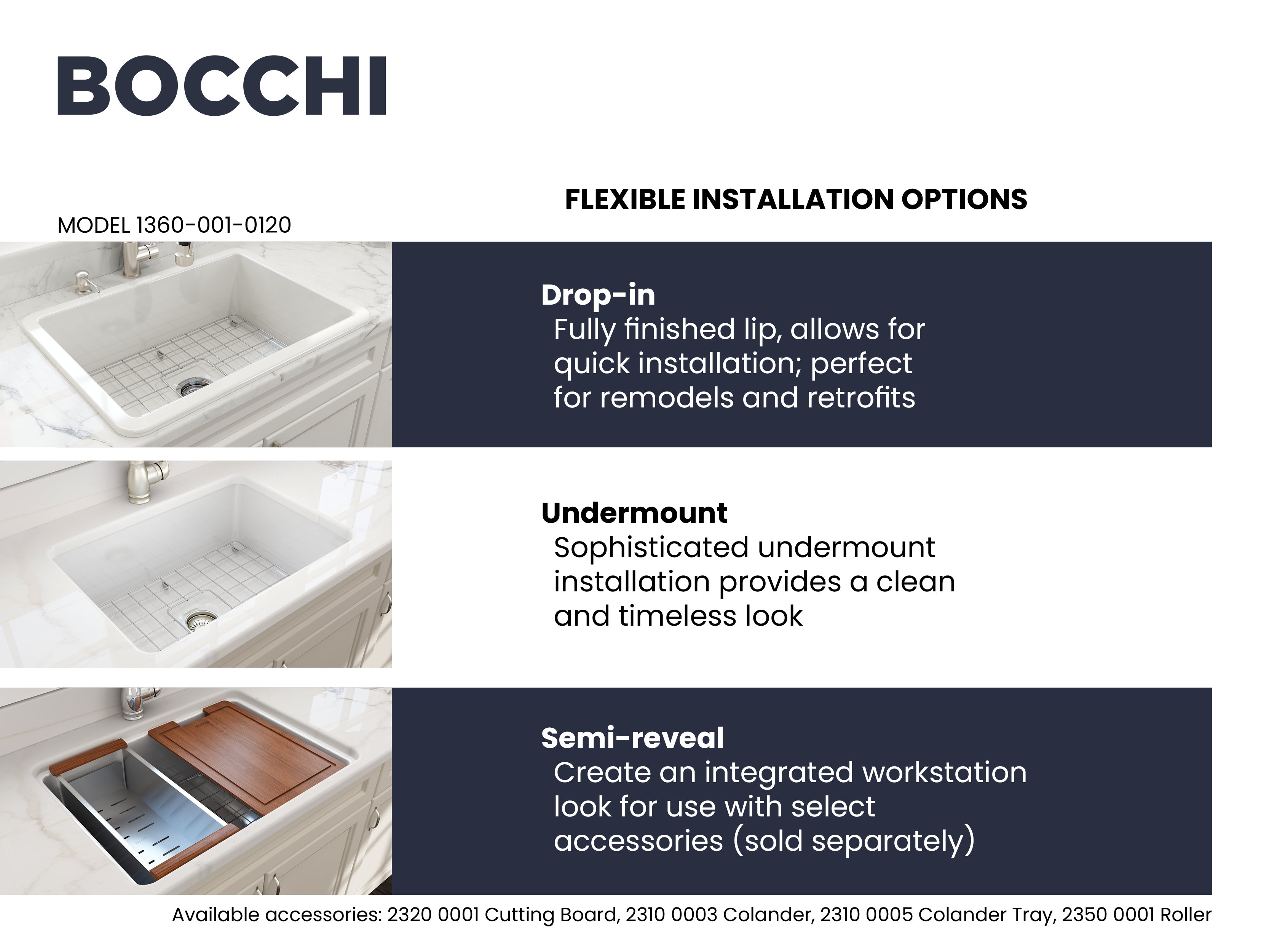 - Accessories can be used with a semi-reveal undermount installation using an 11/16" exposed reveal or with a drop-in installation
