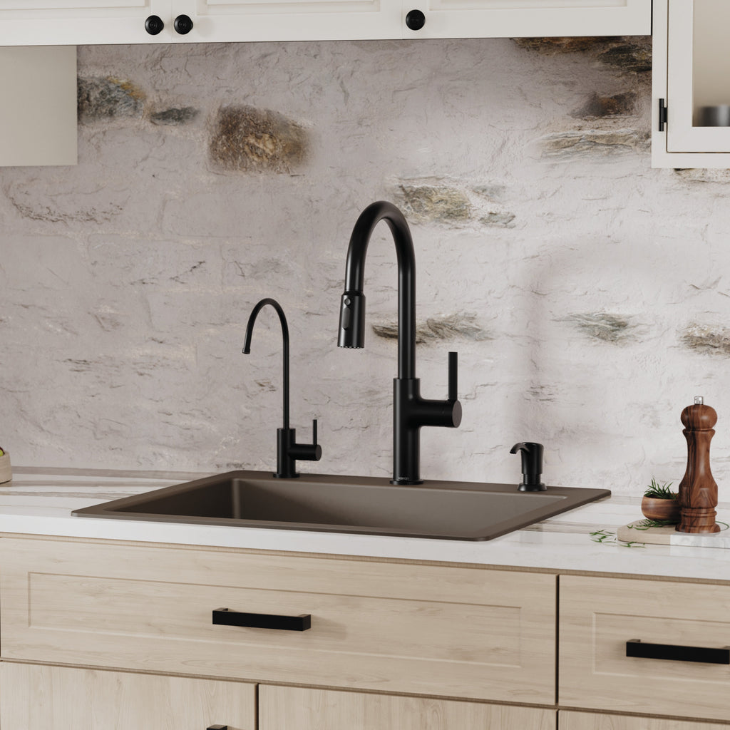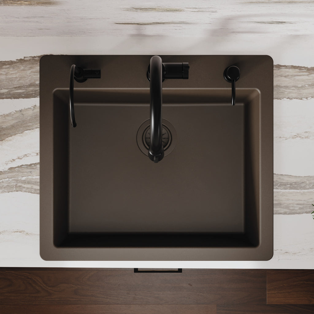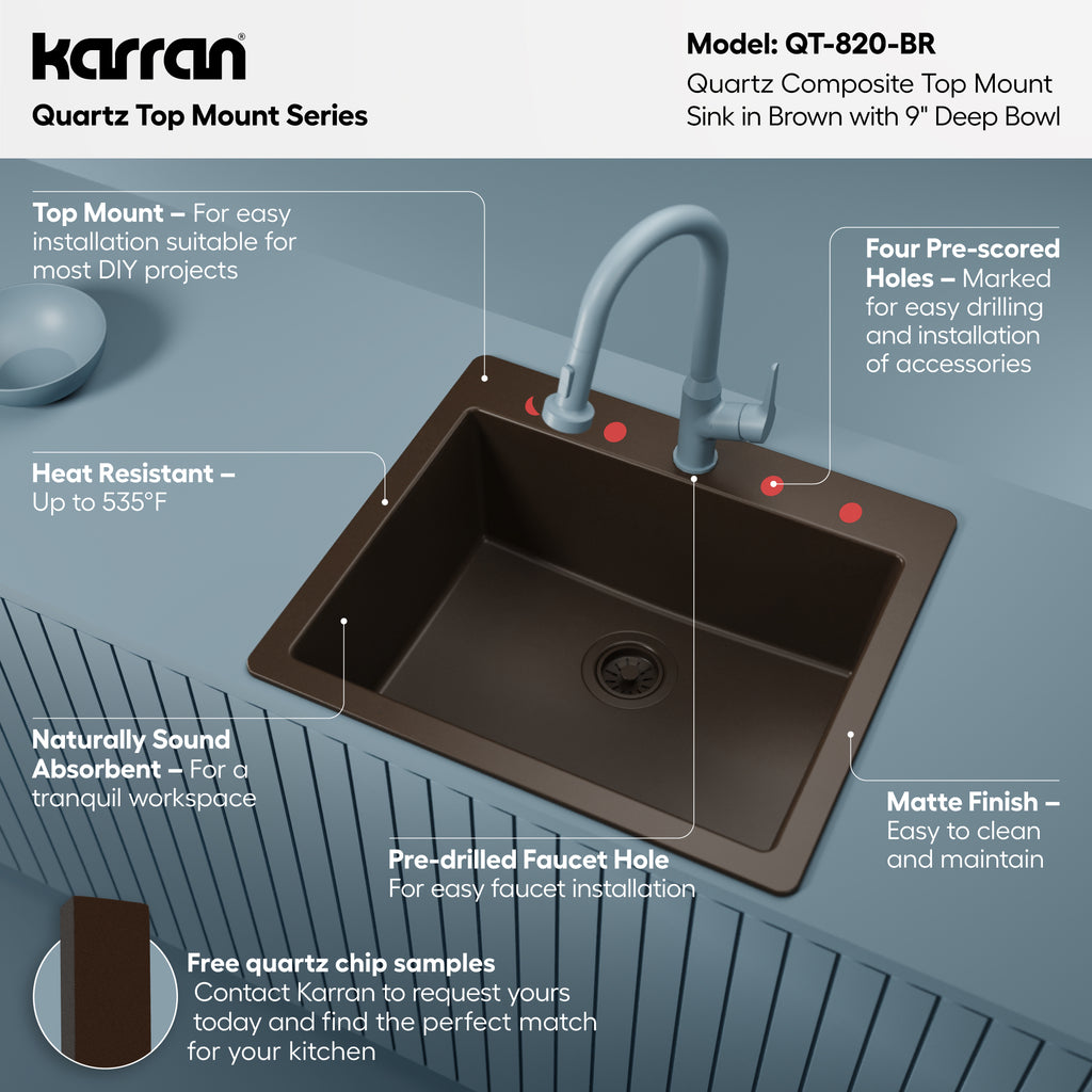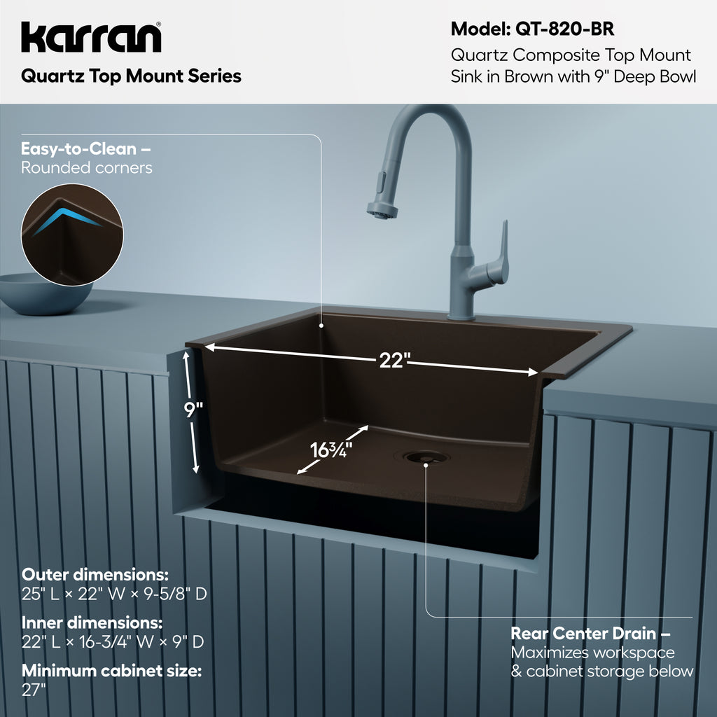 Karran 25" Drop In/Topmount Quartz Composite Kitchen Sink, Brown, QT-820-BR