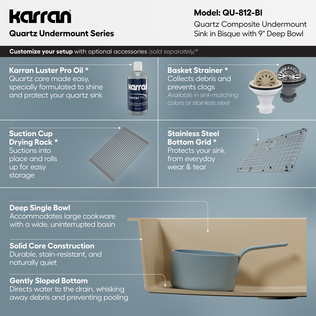 Karran 32" Undermount Quartz Composite Kitchen Sink, Bisque, QU-812-BI