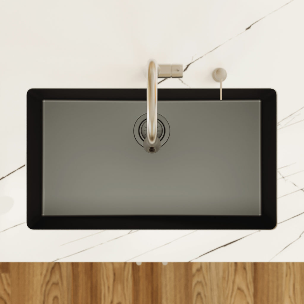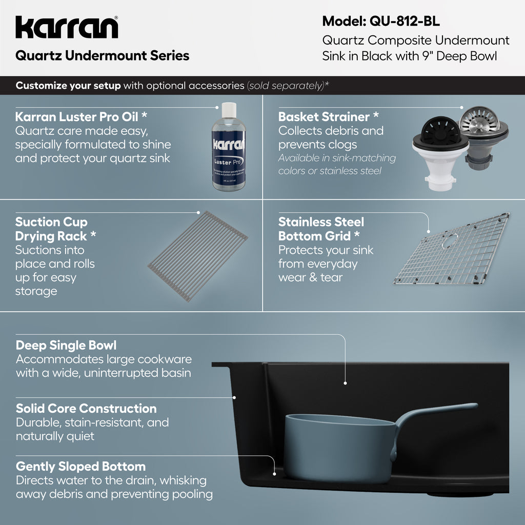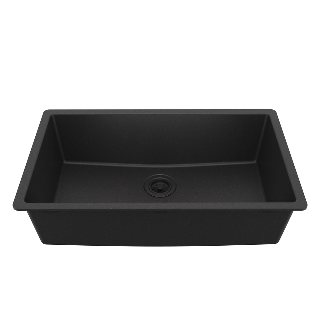 Karran 32" Undermount Quartz Composite Kitchen Sink, Black, QU-812-BL