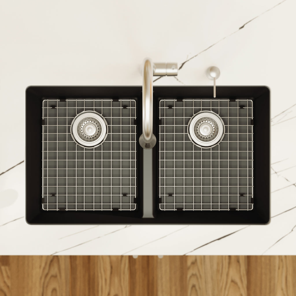 - Accessories included with sink: 2x Bottom Grids, 2x Basket Strainers, 1x Luster Pro Oil, Template and clips