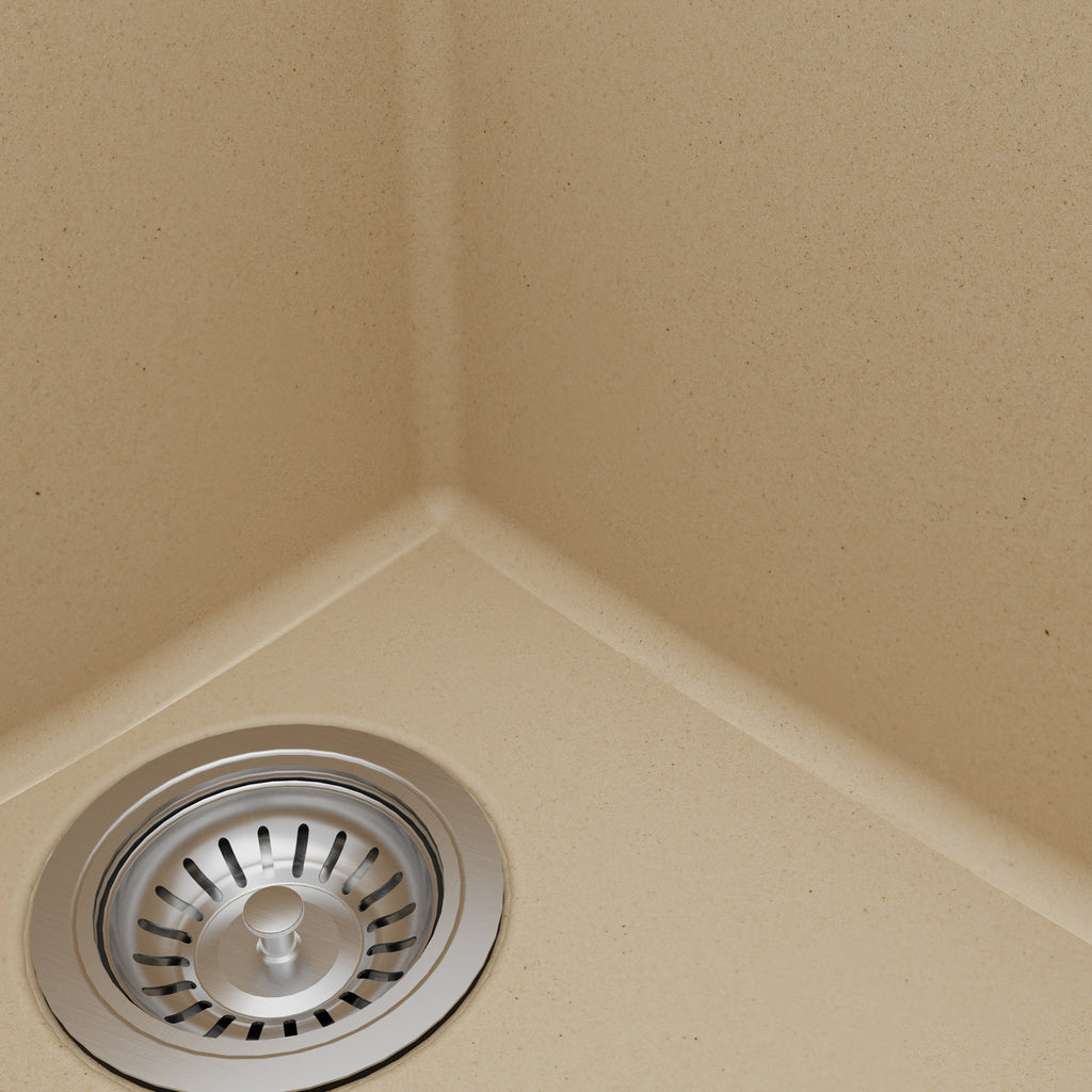 This modern design with crisp, linear styling is sure to be the focal point in your kitchen. Its quartz composite material gives it outstanding durability and will provide years of trouble-free use. This undermount design is available in a selection of 6 elegant color choices to compliment any decor.