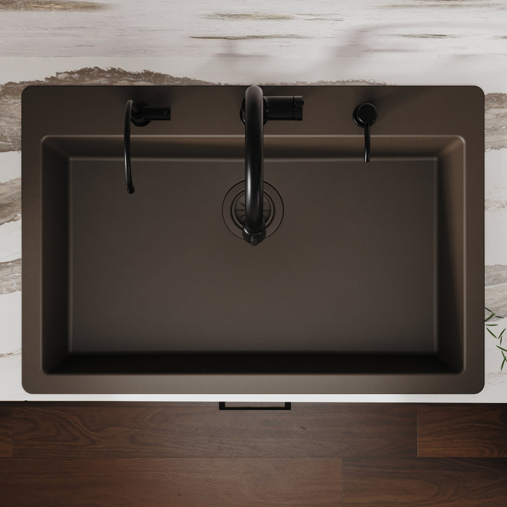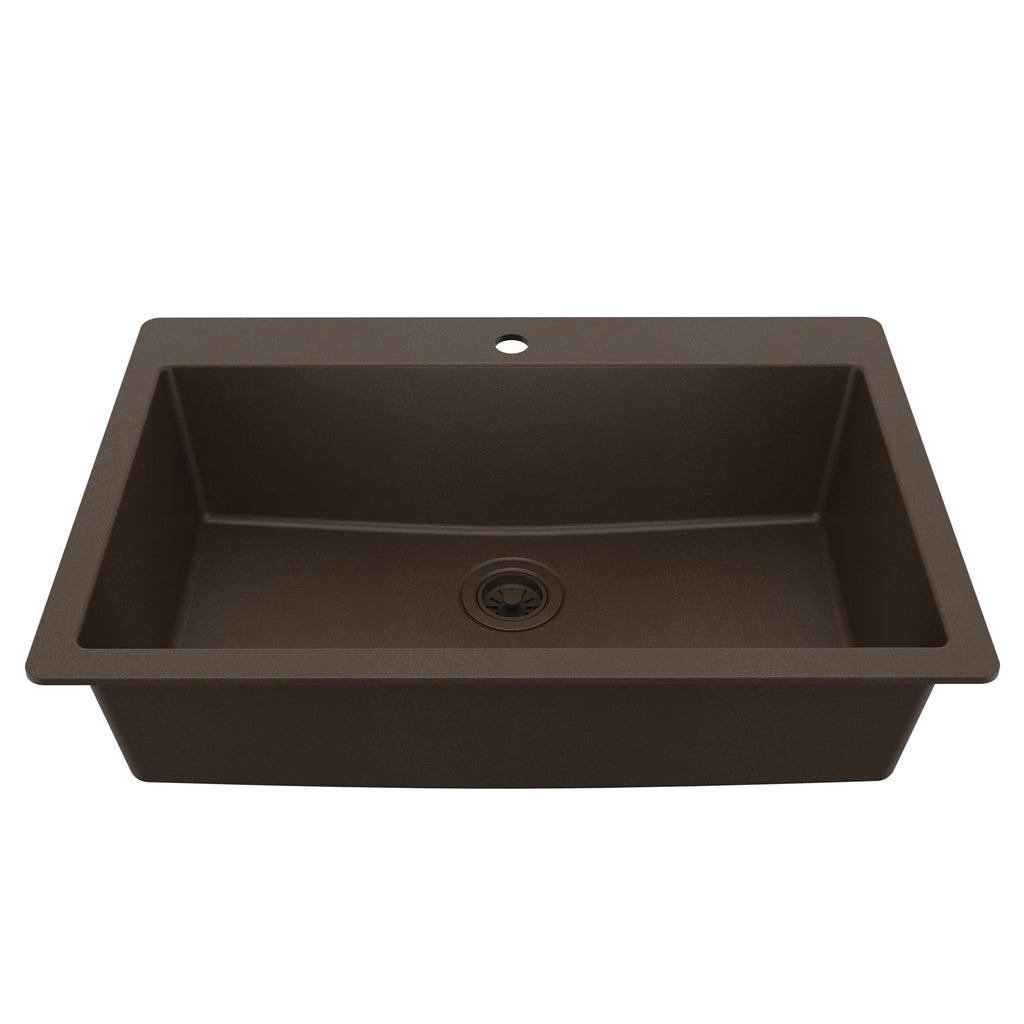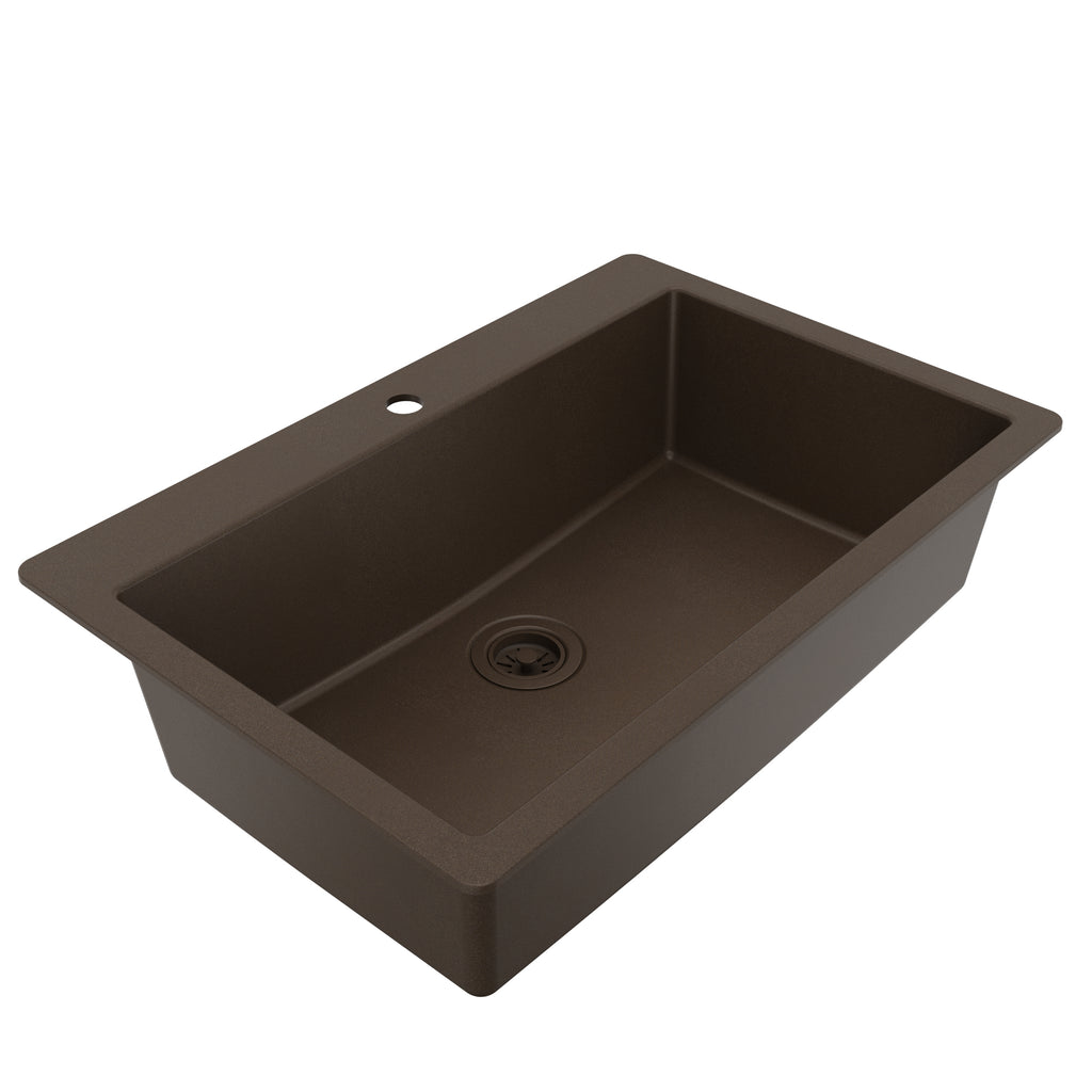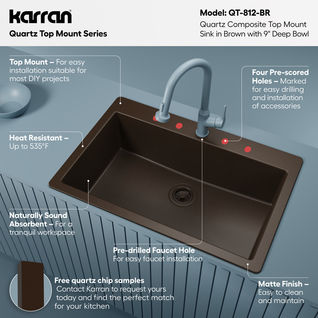 Karran 33" Drop In/Topmount Quartz Composite Kitchen Sink, Brown, QT-812-BR