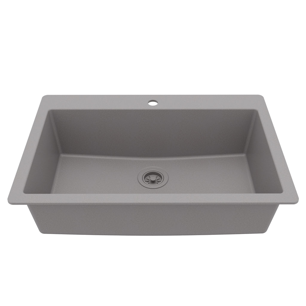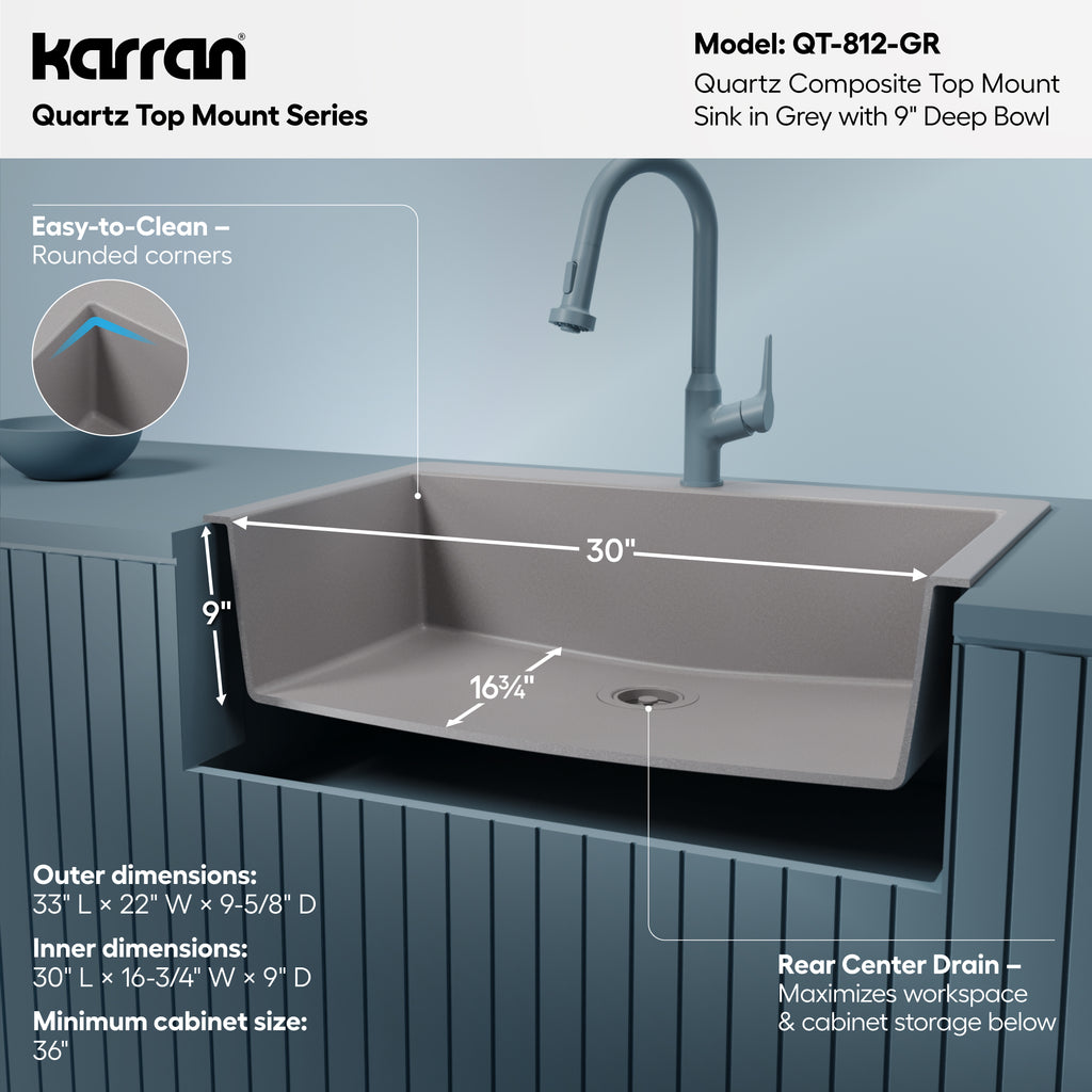 Karran 33" Drop In/Topmount Quartz Composite Kitchen Sink, Grey, QT-812-GR