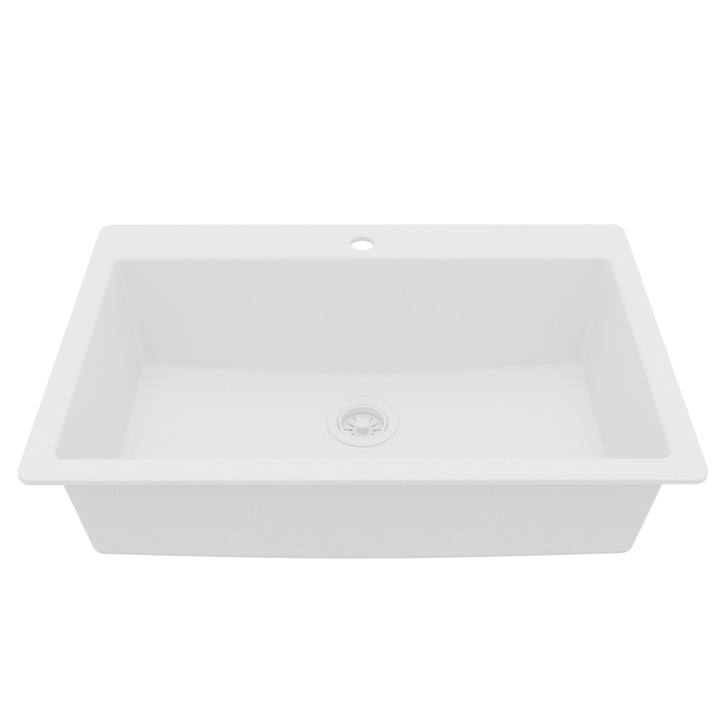 Karran 33" Drop In/Topmount Quartz Composite Kitchen Sink, White, QT-812-WH