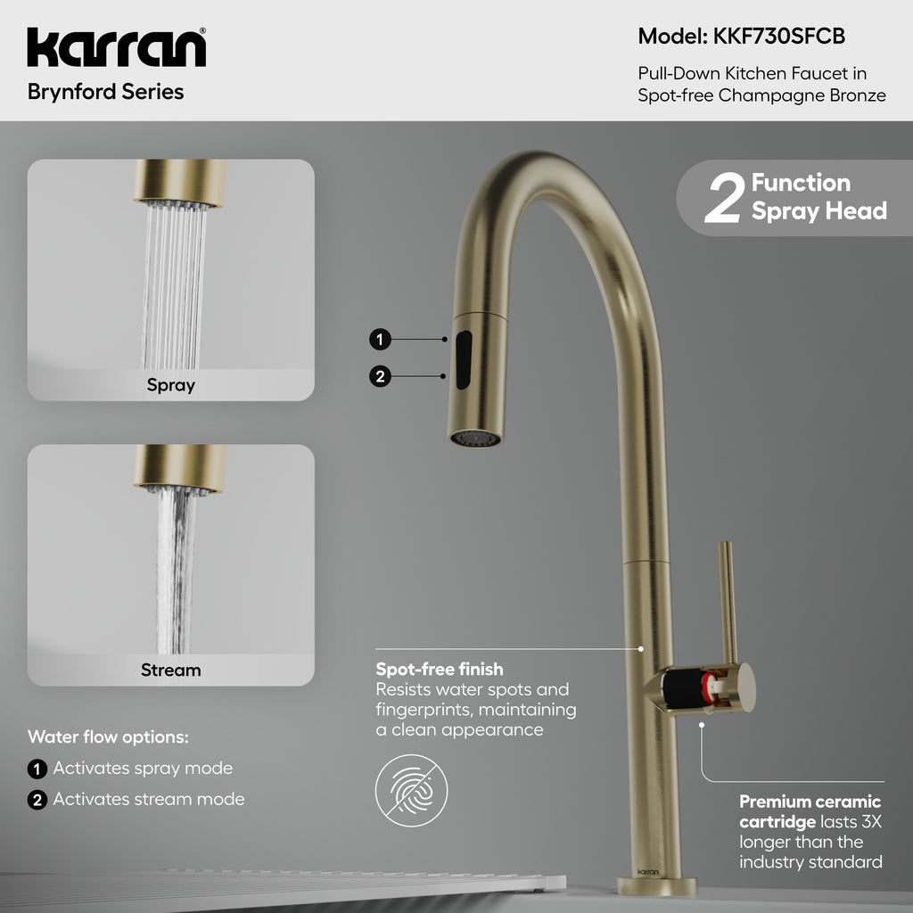 Karran Brynford 1.8 GPM Single Lever Lead-free Brass ADA Kitchen Faucet, Pull-Down, Spot-Free Champagne Bronze, KKF730SFCB