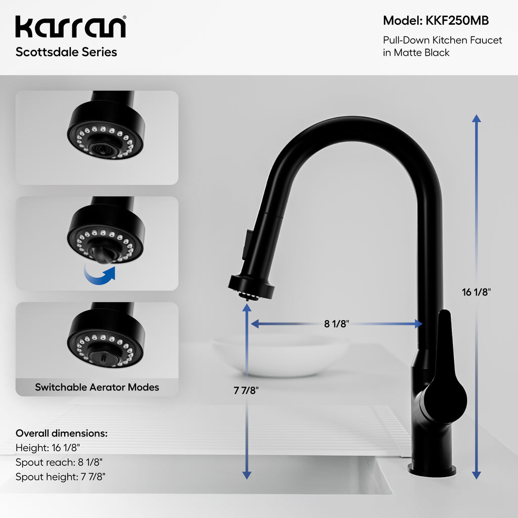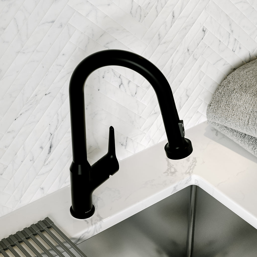 Karran Dockton 1.8 GPM Single Lever Lead-free Brass ADA Kitchen Faucet, Pull-Down, Matte Black, KKF250MB