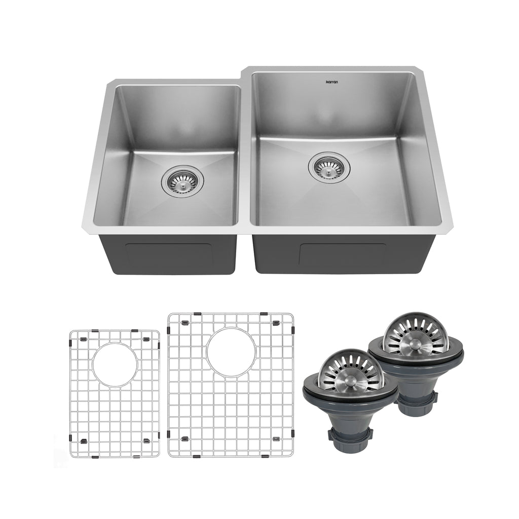 Karran Elite 33" Undermount Stainless Steel Kitchen Sink with Accessories, 40/60 Double Bowl, 16 Gauge, EL-78L-PK1