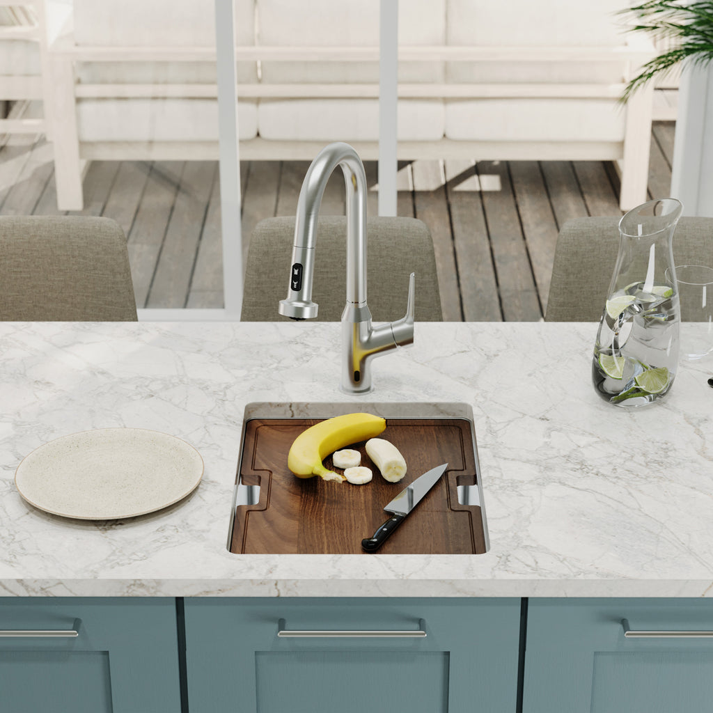 - Compact Yet Powerful: Designed for efficiency in smaller spaces, this workstation sink packs the functionality of a full-sized sink into its compact 15" dimensions, making it perfect for modern kitchens and entertainment areas.