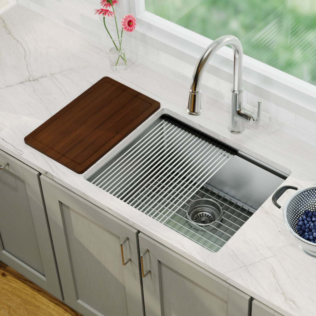 - Integrated Smart Ledge System: The WS-32-PK1 features an innovative smart ledge system that supports included accessories, including a custom-fit Cutting Board and Drying Rack, maximizing your workspace directly over the sink.
