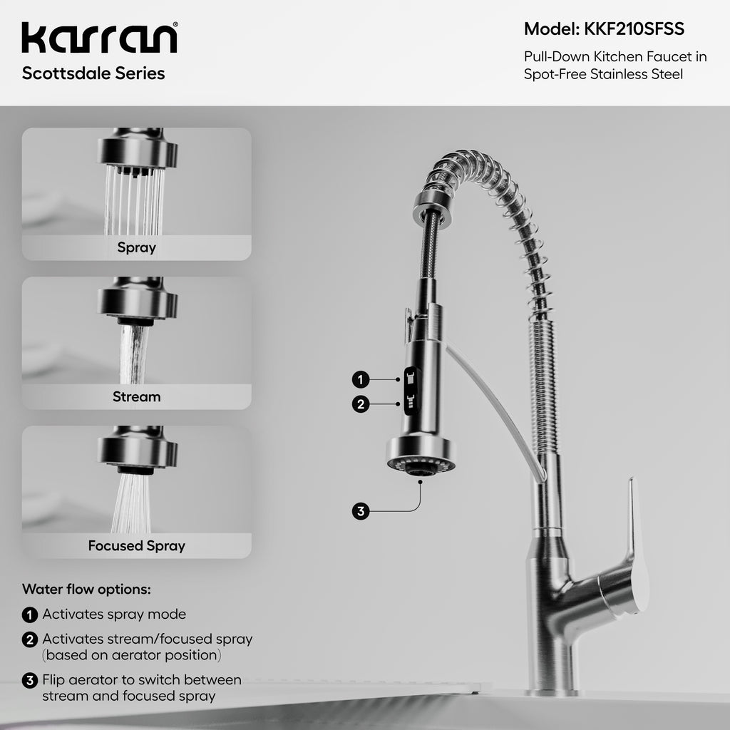 - Commercial-grade Scottsdale faucet (KKF210SFSS) delivers professional cleaning performance with advanced spray technology