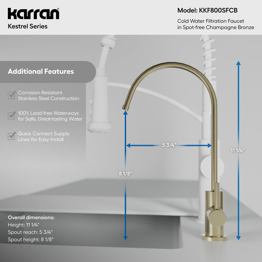 Karran Kestrel 1 GPM Single Lever Lead-free Brass ADA Beverage Faucet, Spot-Free Champagne Bronze, KKF800SFCB