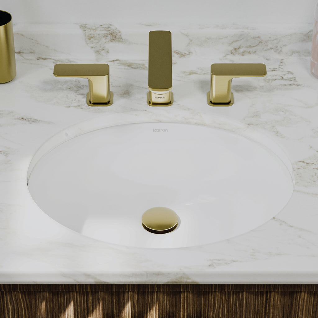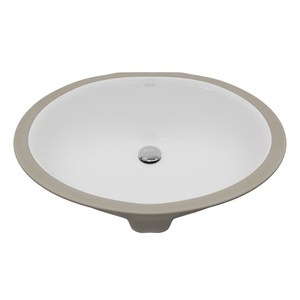 Experience superior craftsmanship with the Karran Valera 19" Oval Undermount Vitreous China Bathroom Sink in White, engineered for maximum durability and enhanced performance in professional bathroom installations. This advanced oval undermount sink features double-glazed porcelain construction that delivers exceptional stain resistance, superior heat protection, and comprehensive mineral buildup prevention for complete maintenance convenience and long-term reliability. The strategic rear-center drain design maximizes available cabinet storage space while ensuring optimal plumbing clearance in standard 24" vanity installations and custom configurations. Professional undermount mounting creates an integrated appearance that enhances countertop functionality, simplifies daily cleanup procedures, and provides seamless design integration. Built-in overflow protection prevents spillage during peak usage periods and busy household schedules, while the naturally quiet vitreous china construction minimizes water noise and splashing for superior bathroom comfort and peaceful environments. The perfectly proportioned 17-1/4" x 14" x 3-3/4" interior bowl dimensions accommodate comfortable daily use while maintaining optimal functionality. ADA compliant design ensures universal accessibility and barrier-free functionality for all users and applications.