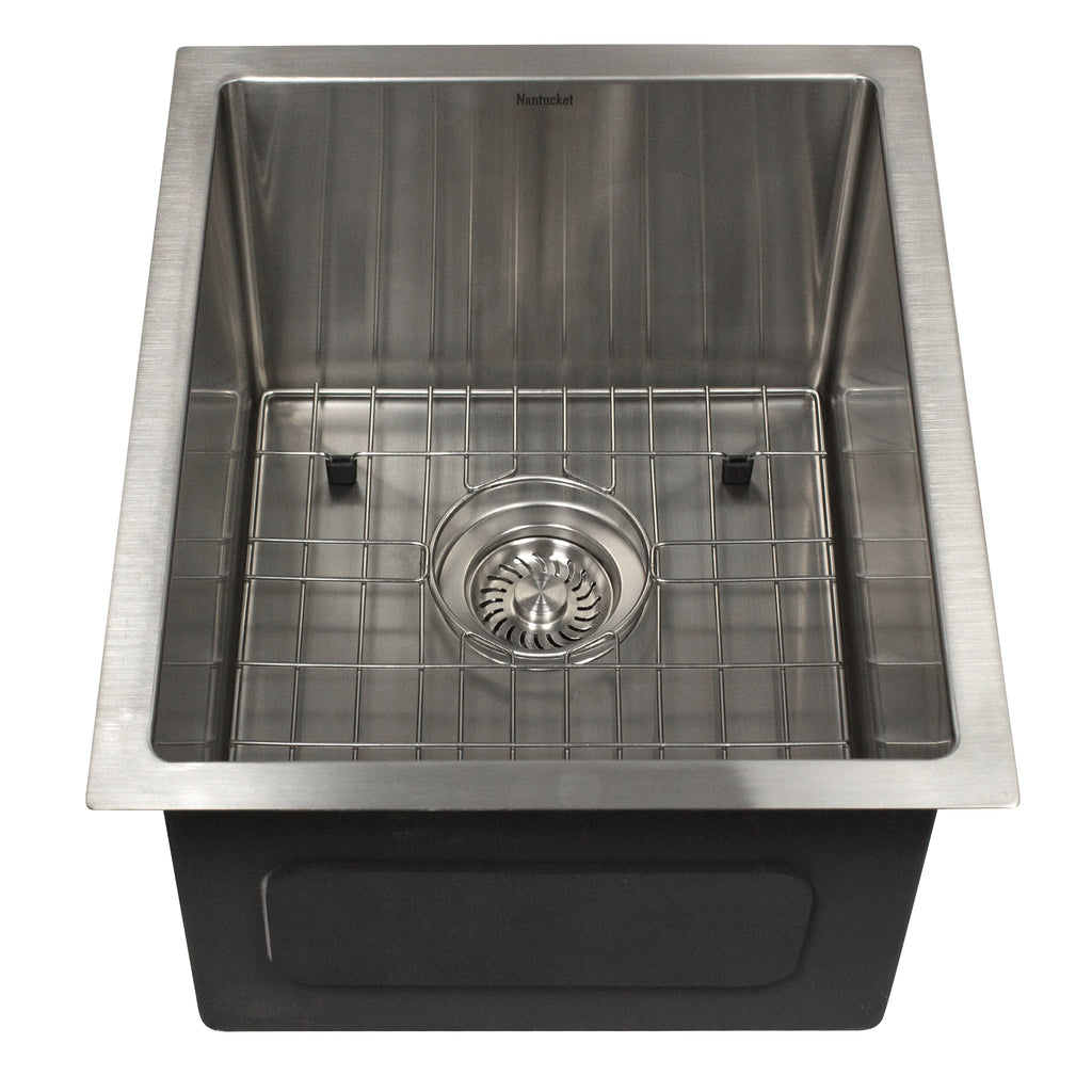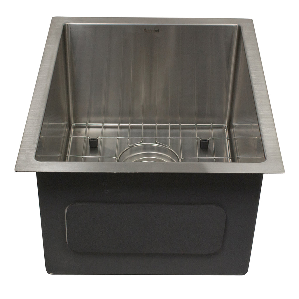 Nantucket Sinks All Weather 15" Undermount 316 Marine Grade Stainless Steel Kitchen Sink with Accessories, 16 Gauge, AW1518-16