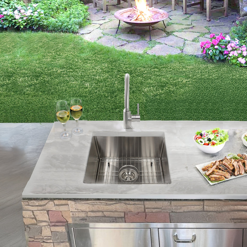 Built for durability in any environment, this All-Weather (AW) sink is constructed from 316 marine-grade stainless steel, making it highly resistant to corrosion and ideal for outdoor use. Whether it's installed in a backyard kitchen, grill station, or patio bar, this sink is made to handle the elements year-round. This AW1919-16 includes a stainless steel grid to help protect the basin, along with NS35L-EXT drain.