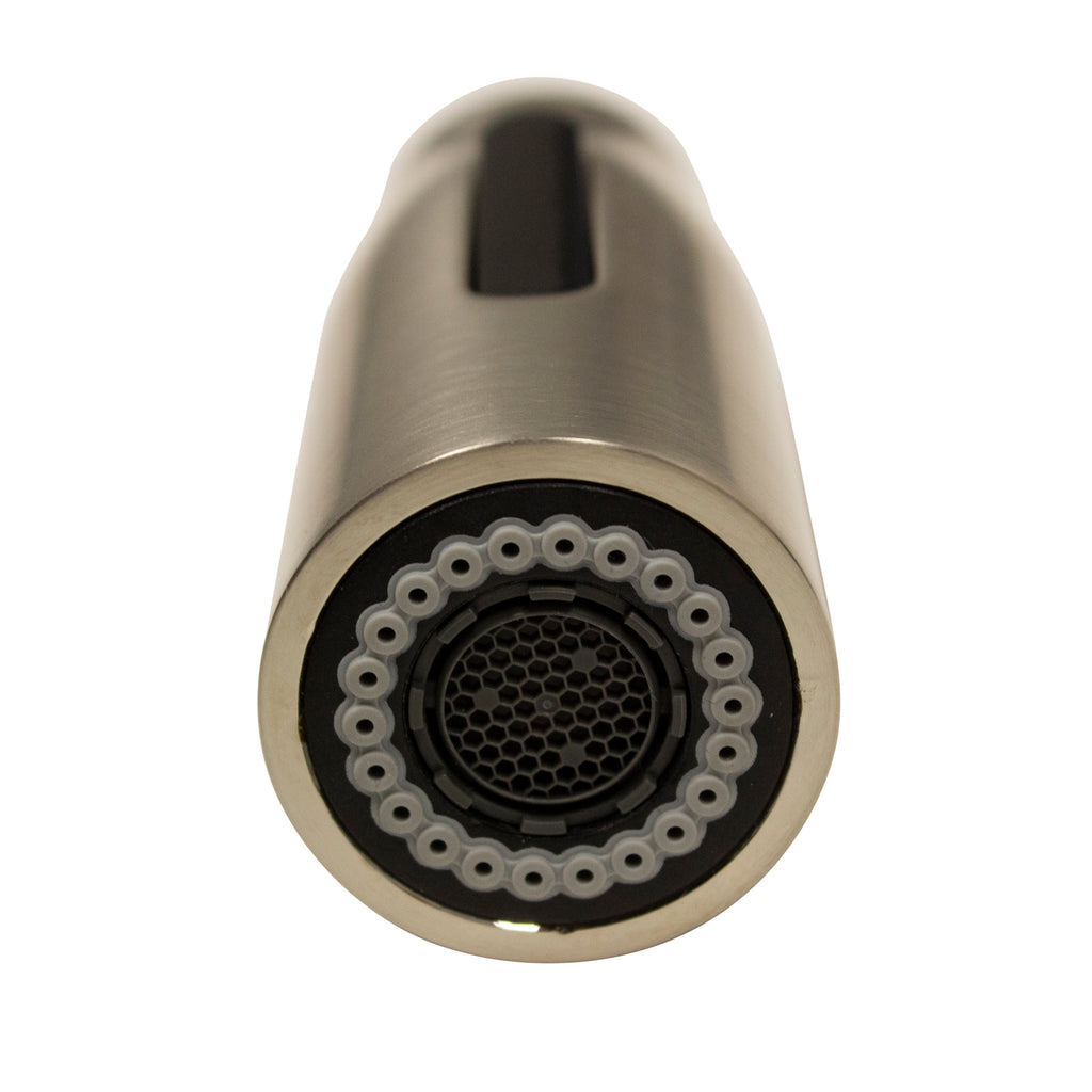 With stylish curves, the KFPD16BRS is a single handle pull down faucet in stainless steel with a brushed finish. Ceramic Disc and Full Code Compliance. This faucet has a flow rate of 1.75 gallons per minute. Blending modern elegance with everyday convenience, this kitchen faucet is designed to enhance both style and function in the kitchen. Its clean arched spout and sleek single-handle design create a versatile pull-down faucet that fits seamlessly into a variety of kitchen aesthetics. With its refined appearance and practical features, the KFPD16BRS faucet delivers a perfect balance of contemporary beauty and performance. CSA certified.