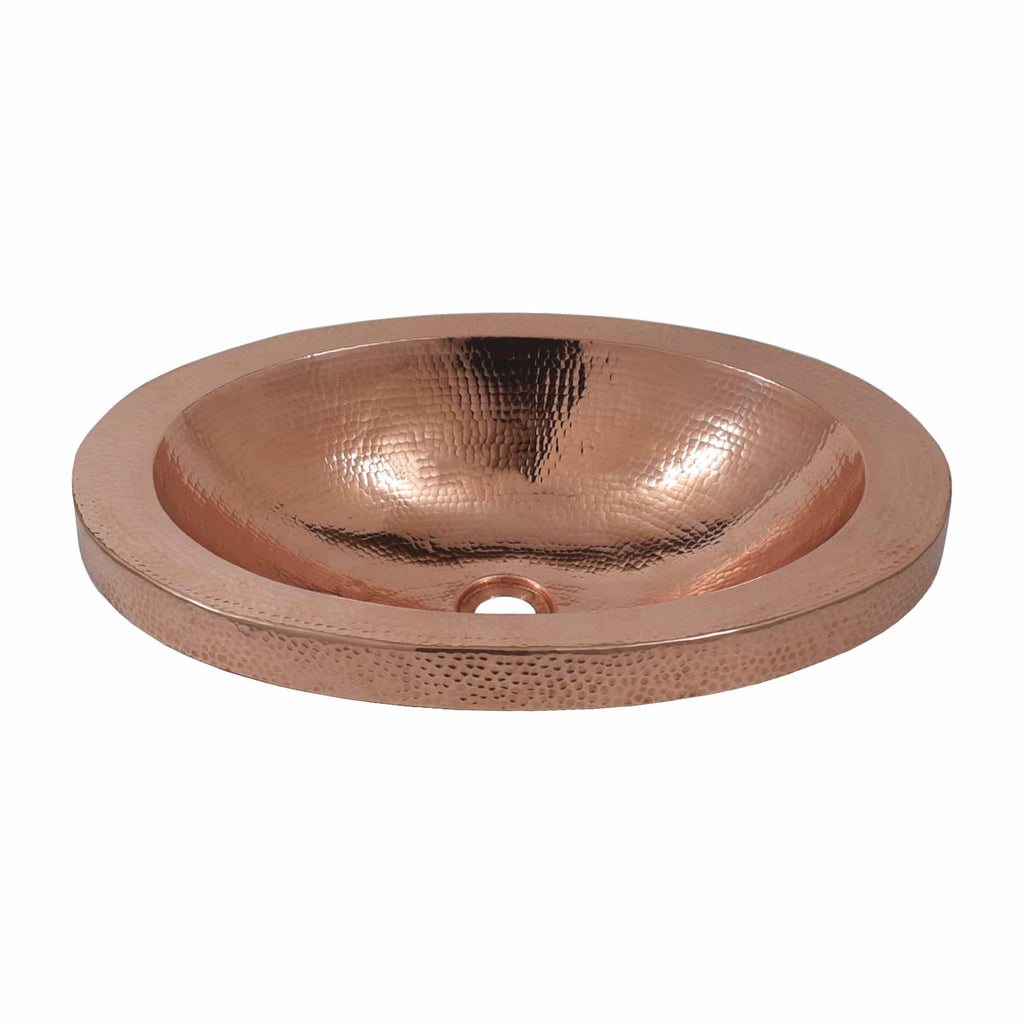 Hibiscus copper bathroom sinks oval bowl and raised profile showcase its impeccable hammered finish while its drop-in design allows for easy installation. Artisan-crafted from high-quality recycled copper, the Hibiscus evokes a classic grace. With its everyday elegance comes simple care: rinse with mild soap and water to preserve the sinks living finish.