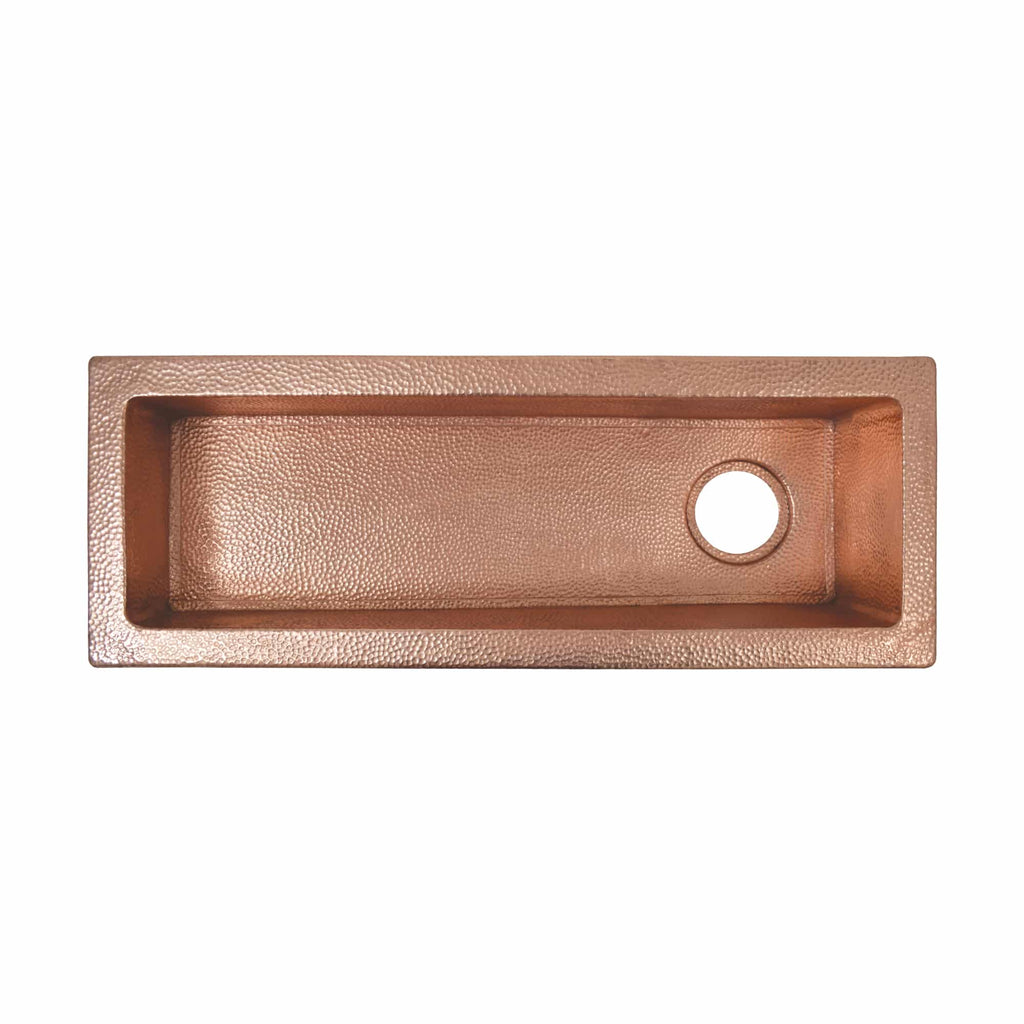 The Rio Chico's sleek and compact design makes it a favorite as a bar sink or kitchen prep sink. With a graded transition toward the drain, this trough sink is made for easy clean up, while the beauty of the hand hammered copper makes for a perfect presentation piece. Artisan-crafted and forged of high-quality recycled copper, the Rio Chico brings modern functionality to a classic material.