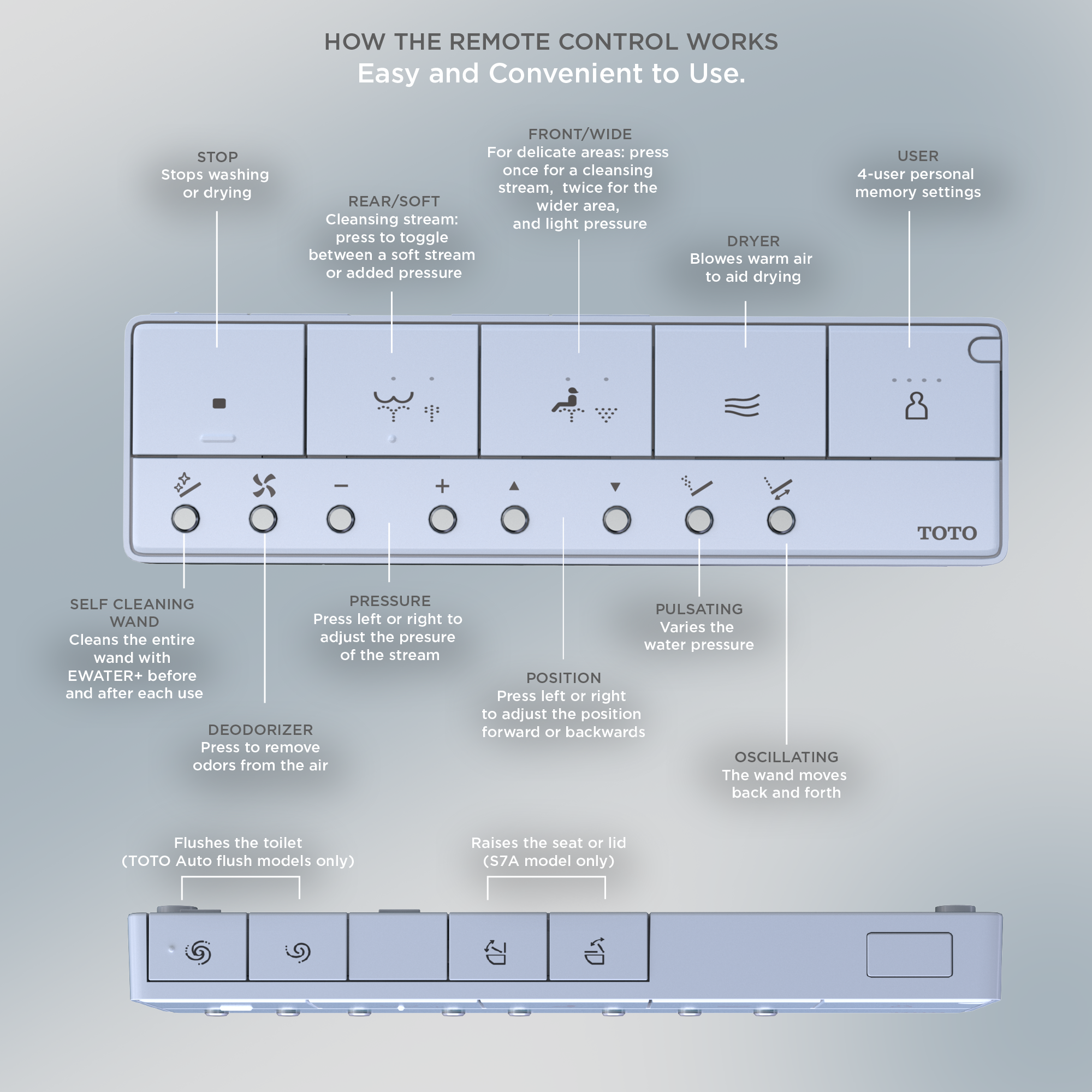 - Heated seat, automatic air deodorizer, and warm air dryer with five adjustable temperatures